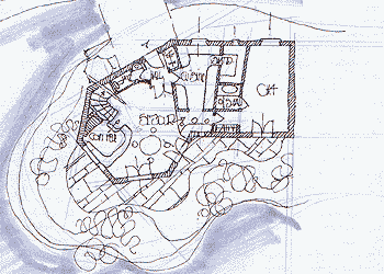 This house is called Rotunda because it's surrounded by the water as you can see it on this ground floor map. Its entry is located under the BuiltUp bridge. You can also see it on the Aerial Perspective View...