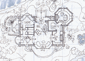 This is the final version of the project. Here, you can see the inside of the castle ground floor (hall, kitchen, library, chimney, TV room...) and the river around. On next page, you'll see the first floor map of it...