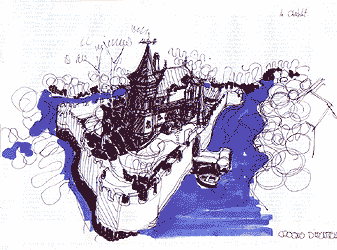 This sketch allows to understand better the context and spirit of the small Castle on the Island... Surrounded by woods and a river.